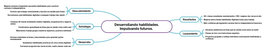 La organización sin fines de lucro con sede en Montreal requería una programación educativa digital integral específicamente diseñada para empoderar a mujeres jóvenes inmigrantes a través del desarrollo de habilidades que permitiría la independencia económica y el avance profesional. El desafío central implicaba lanzar un curso digital especializado cubriendo desarrollo web, marketing en línea y fundamentos de comercio electrónico a través de entrega remota dos veces al año durante períodos de cuatro meses, asegurando accesibilidad independientemente de barreras geográficas o económicas.