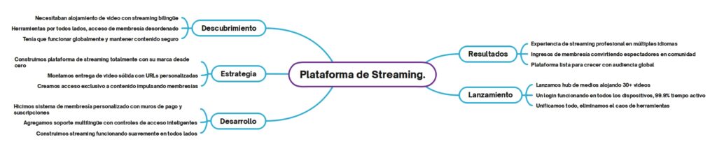 La implementación incluyó un sistema de membresía totalmente personalizado con acceso a contenido restringido, procesamiento de pagos recurrentes y niveles de acceso dinámicos que transforman espectadores en miembros de la comunidad. La plataforma logró integración completa de marca con capacidades multilingües y experiencia de contenido de clase mundial que mantiene consistencia de marca en cada elemento de interfaz. El proyecto entregó más de 30 videos alojados con confiabilidad de 99.9% de tiempo de actividad, funcionalidad fluida de inicio de sesión único en todos los dispositivos y arquitectura de sistema unificado que eliminó la fragmentación previa de herramientas. La plataforma de streaming ahora opera como un centro de medios integral con flujos de ingresos de membresía sostenibles e infraestructura escalable que apoya el crecimiento continuo de audiencia global.