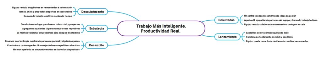 La implementación incluyó el despliegue de cuatro agentes de IA personalizados diseñados para manejar tareas repetitivas, sugerir mejoras de flujo de trabajo y evolucionar con patrones de comportamiento del equipo, reduciendo costos generales manuales mientras aceleran el movimiento hacia adelante. La ejecución técnica abarcó capacidades de edición en vivo, actualizaciones sincronizadas en todos los dispositivos, accesibilidad móvil y herramientas estructuradas de lluvia de ideas que eliminan requisitos de cambio de herramientas. El proyecto entregó un centro unificado para tareas, notas y comunicaciones con 100% de sincronización móvil y de escritorio, permitiendo a los equipos trabajar flexiblemente mientras mantienen el flujo de productividad. El espacio de trabajo mejorado con IA ahora opera como un centro de comando inteligente que transforma ideas en resultados accionables mientras apoya la colaboración de equipos distribuidos a escala.