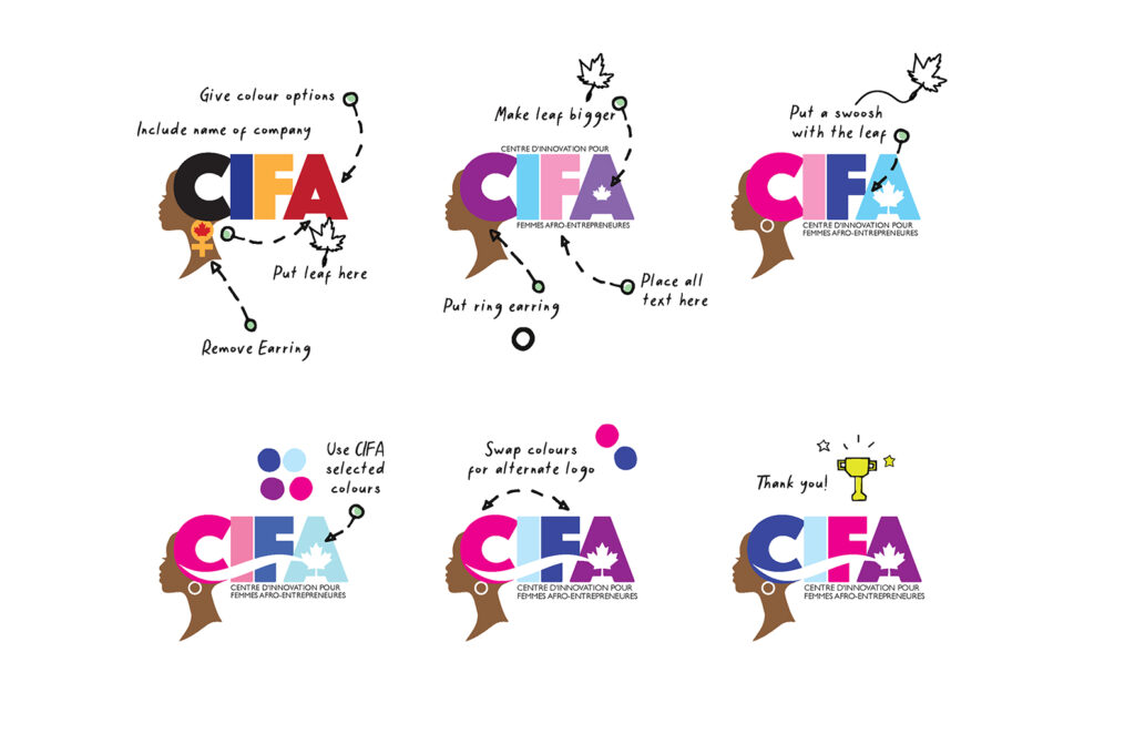 Two non-profits, CEJFI and Chafric, decided to team up and create something new together. They called it CIFA (Centre d’innovation pour femmes afro-entrepreneures), a group focused on helping Black women entrepreneurs build and grow their businesses. The challenge was creating a brand new logo that honored both founding organizations while standing on its own. They needed something professional that Black women entrepreneurs would recognize and trust, plus basic guidelines to keep everything looking consistent as they grew.